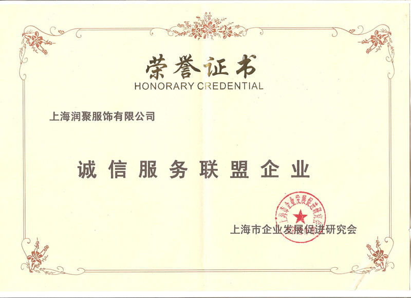 我司已获得上海市流通经济研究所的诚信联盟会员单位荣誉证书以及上海鑫锦信用评估专家委员会评定的信用等级证书等。